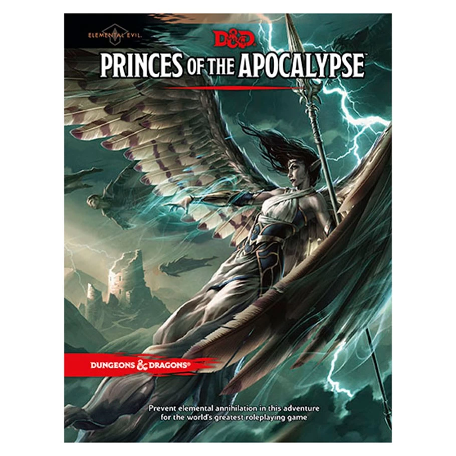 Characters in the D&D tabletop roleplaying game can help prevent devastation to the lands and people of the Forgotten Realms in the Princes of the Apocalypse adventure by Wizards of the Coast and Sasquatch Game Studio. Princes of the Apocalypse includes an epic adventure for characters levels 1–15 as well as new elemental spells and the element-touched genasi as a new playable race.