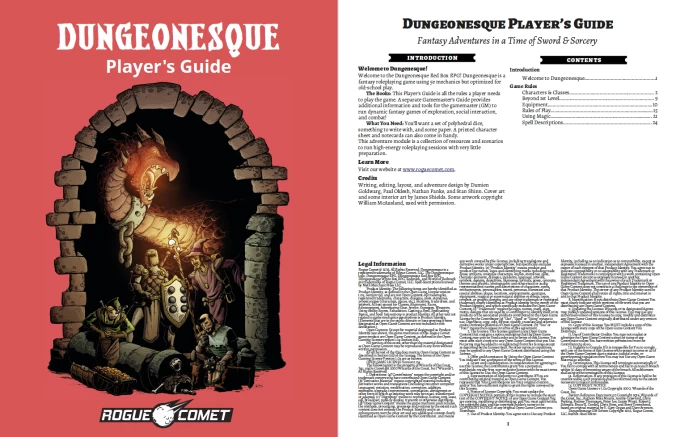 Adventure Awaits! Dungeonesque is a fantasy roleplaying game with 5e mechanics optimized for old-school play. It`s a complete game containing all the rules you need for years of roleplaying adventures. The Red Box Edition of Dungeonesque features a Player`s Guide with all the rules to play the game, including information on five races (Human, Elf, Dwarf, Halfling, and Half-Elf), four classes (Fighter, Wizard, Cleric, and Rogue), a solo adventure, and a spell list, as well as the Gamemaster`s Guide, which offers all the tools you need to run the game. It also includes a bestiary, old-School house rules, early edition conversion tools, hex-crawl rules, random encounters, and numerous gamemaster tools to run on-the-fly games.