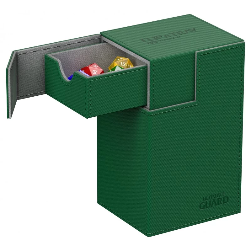 Premium XenoSkin card box with magnetic closure and card and dice trays for the protection and archival safe storage of double-sleeved cards in standard size.