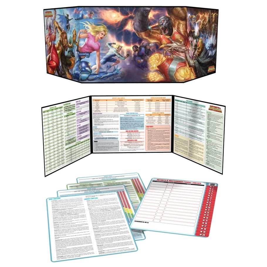 The Mutants & Masterminds: Gamemaster’s Kit is a key accessory for your superhero campaign. It features a sturdy and practical 3-panel hardback screen with all the charts and tables you need to play the World’s Greatest Superhero RPG. The kit also includes 4 quick reference cards and a combat tracker that you can write on with wet or dry erase markers.
