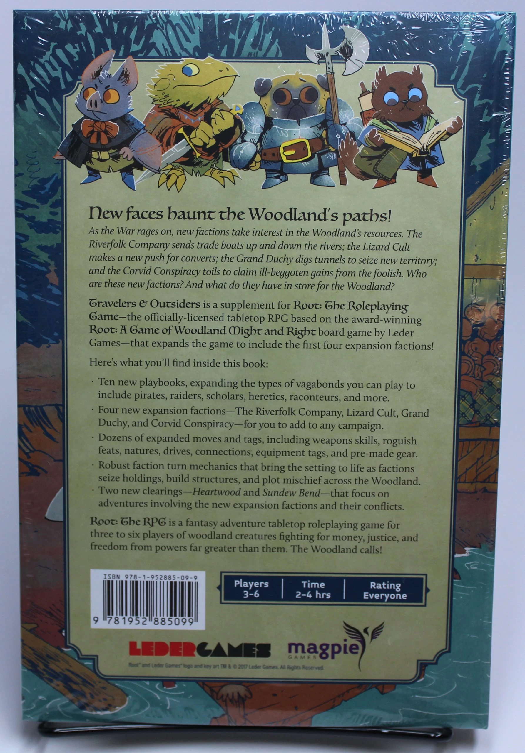 Travelers & Outsiders is a supplement for Root: The Roleplaying Game, the officially licensed tabletop RPG based on the award-winning Root: A Game of Woodland Might and Right board game by Leder games. It expands the core game to include the first four expansion factors!