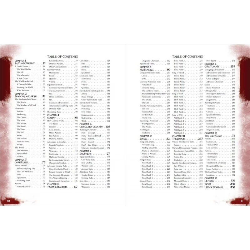 At its heart, SINS is a narrative role-playing game, focused on telling the stories of Nemissaries – powerful individuals reborn into a mysterious post-apocalyptic world fraught with supernatural dangers and dominated by an undead hivemind known only as the Brood. SINS is a game about choice, and the consequences which come from wielding great and terrible power. It’s also about horror and survival in an unforgiving world fraught with danger, where morality and necessity propose problems that require just as much forethought to overcome as eldritch horrors. Sins runs on a highly-praised, unique D6 dice pool engine, that keeps games fast, fluid and narrative-driven. Innovative, simple mechanics tie character development with mechanical progression, and co-operative storytelling mechanics powered by character’s hopes and motivations ensure that compelling narrative arcs occur in every game, driven by the actions of the player characters.
