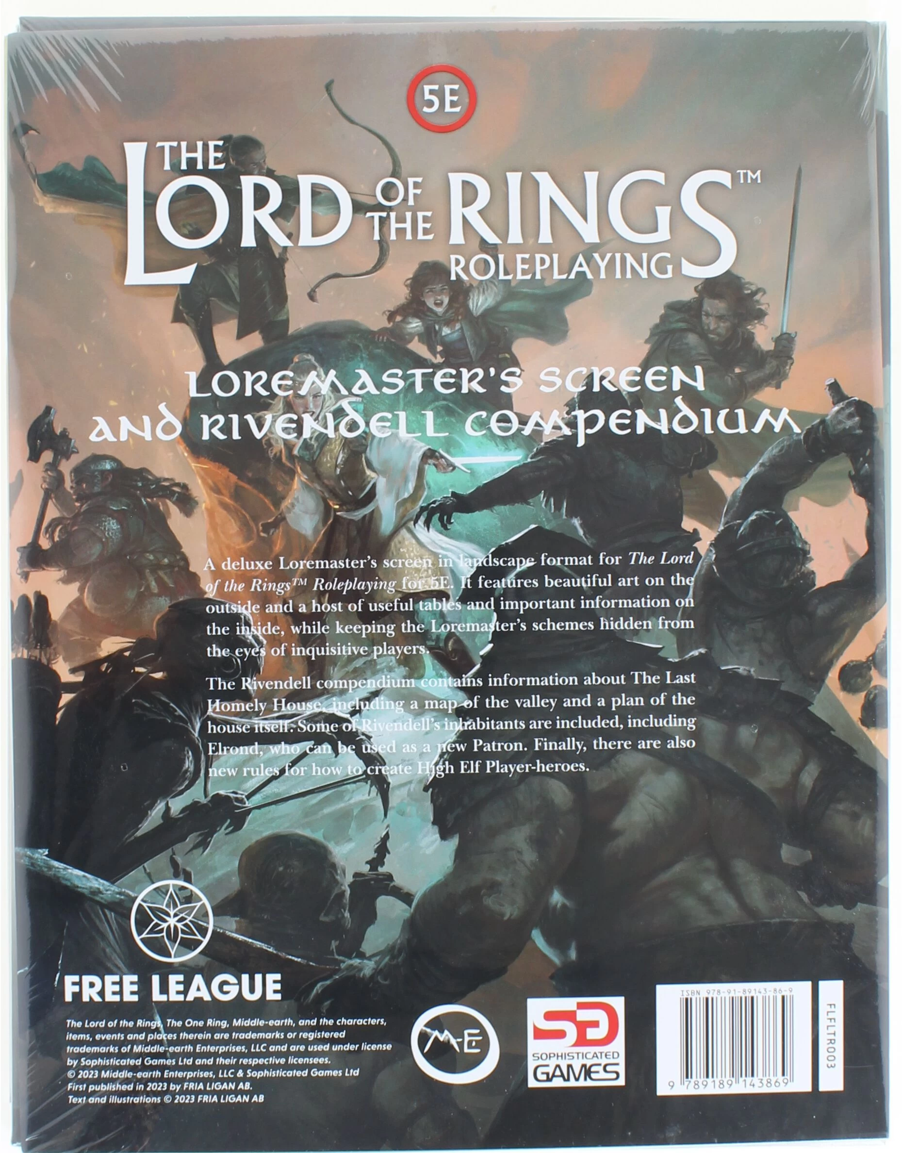 A deluxe Loremaster’s screen in landscape format for The Lord of the Rings Roleplaying 5e game, including a Rivendell compendium. It features beautiful art on the outside and a host of useful tables and important information on the inside, while keeping the Loremaster’s schemes hidden from the eyes of inquisitive players.